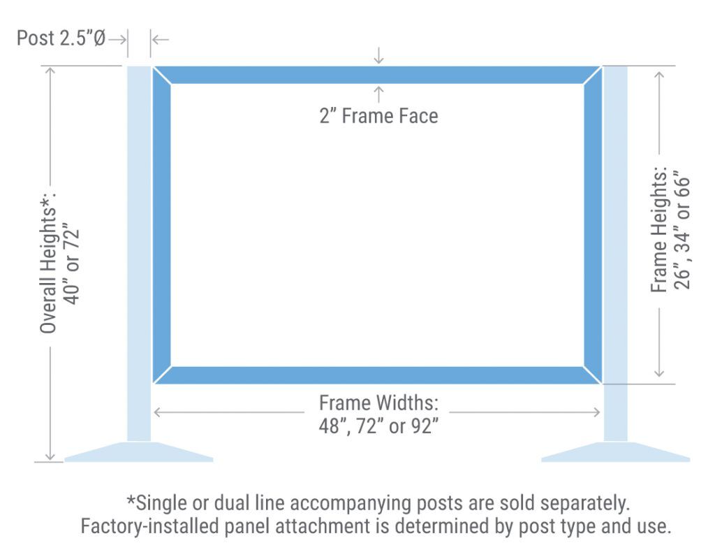 • 66″h Q-PANEL requires 6’Tall Post with Clips & Cap.