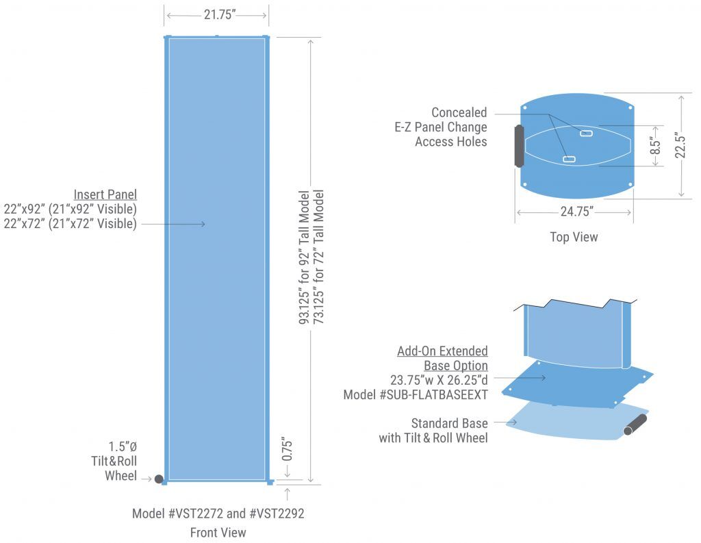 The Versa Stand Sign Tower delivers standout presence with a sleek profile and two height options (72" and 92") for clear, eye-level messaging. An extra-heavy 30 lb base keeps the tower steady in busy spaces, while the integrated Tilt & Roll wheel makes repositioning simple. Proudly American-made, Versa Stand is engineered for durability and designed to adapt to your needs.