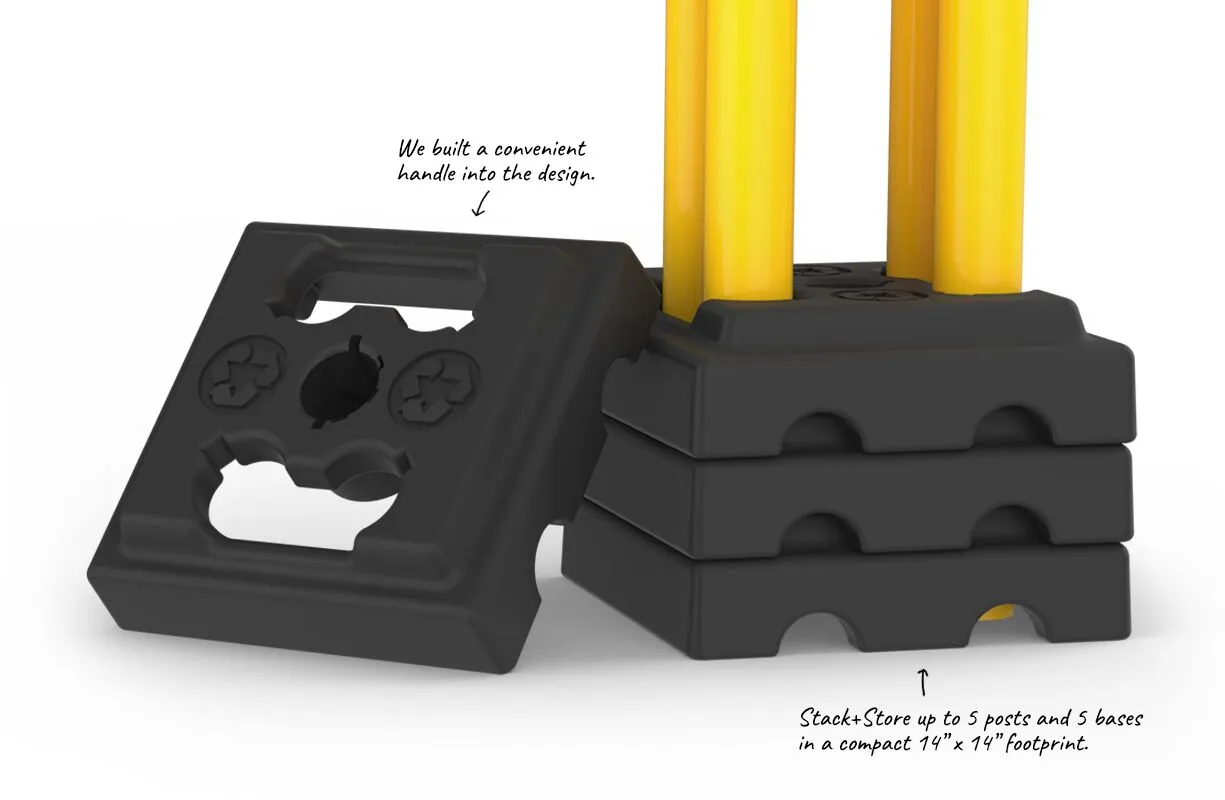 ➡️ Transform nearly any 2.5″ diameter post into a utility stanchion with a recycled-rubber base. No tools needed—just slide the post into place.